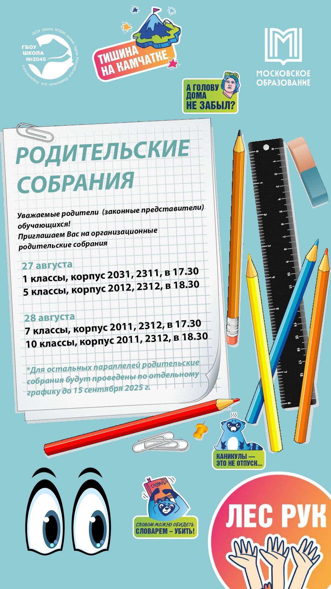 Для остальных параллелей родительские собрания будут проведены по отдельному графику до 15 сентября 2025 г.