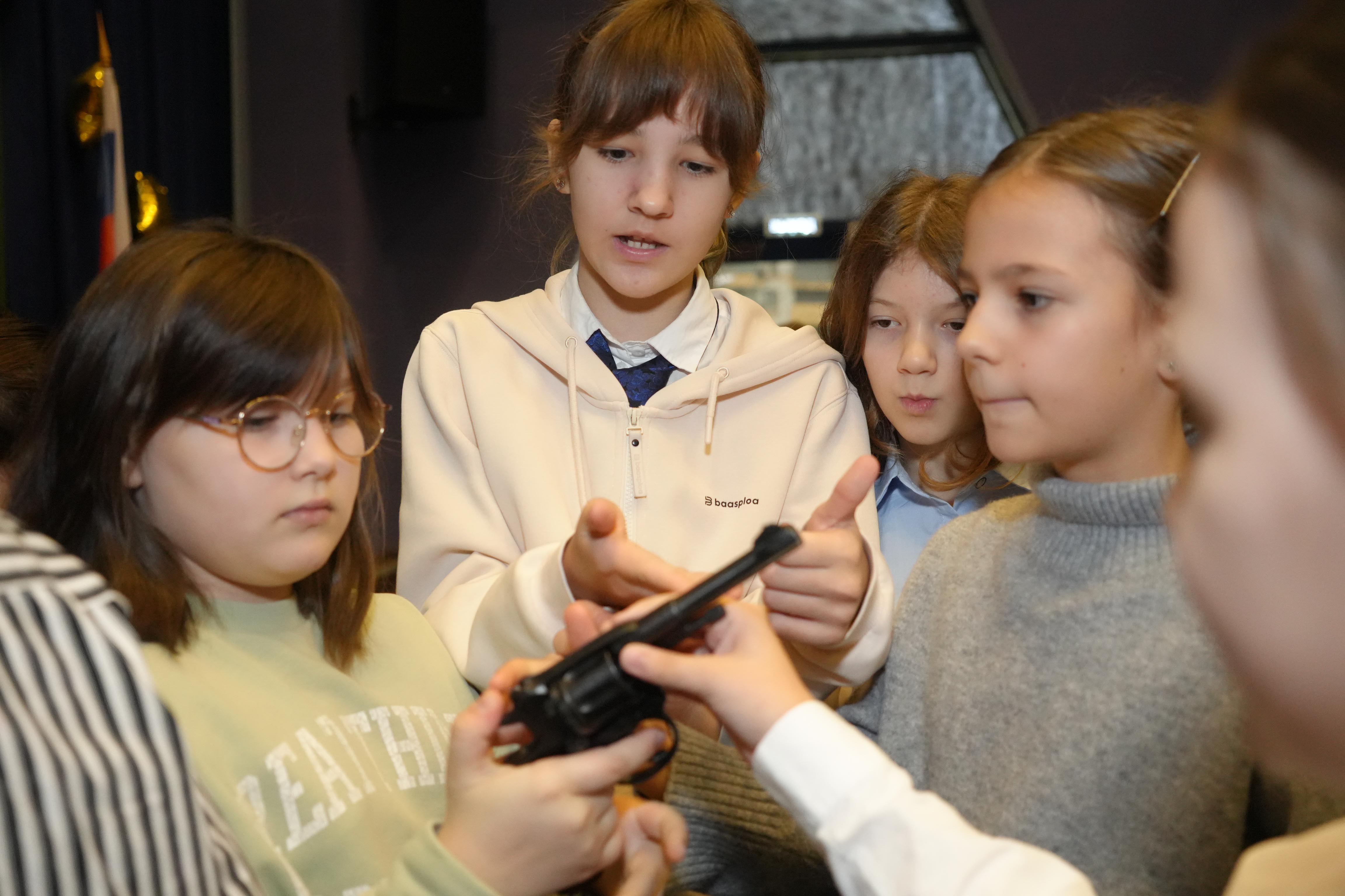 Особый восторг у школьников вызвала возможность не только увидеть, но и подержать в руках настоящие макеты оружия времен Великой Отечественной войны, которые принес Андрей Александрович. Это позволило ребятам буквально прикоснуться к истории.